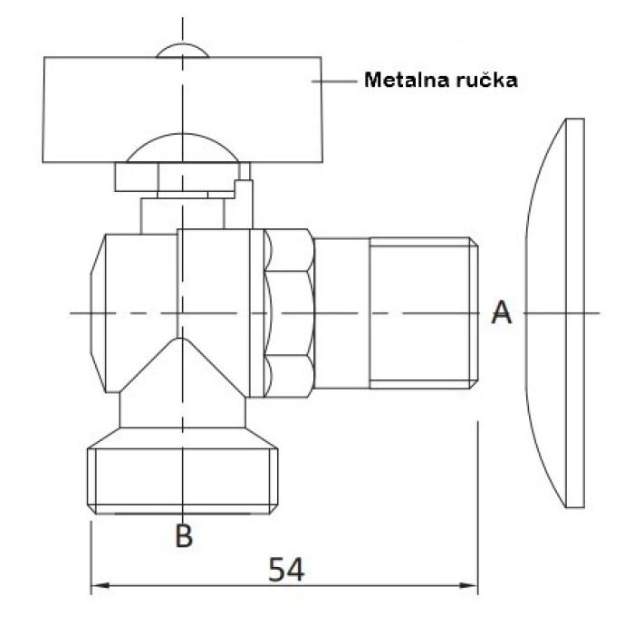 Ventil 1/2" x 3/8" kutni ARCO - Nova - metalna ručica